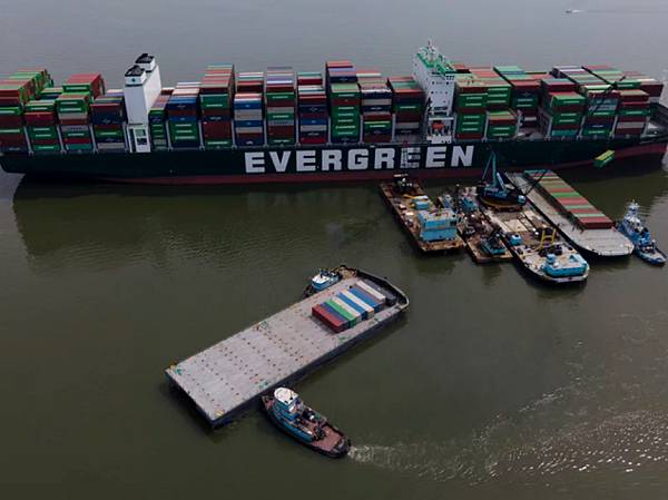 引述美媒報導,這艘船已於4/17當地時間7時左右被移走。此前船上的近5000個貨櫃中,近500個已完成卸載,此舉旨在減輕船身重量,並利用周末滿月的漲潮,幫助這艘龐然大物順利脫困。