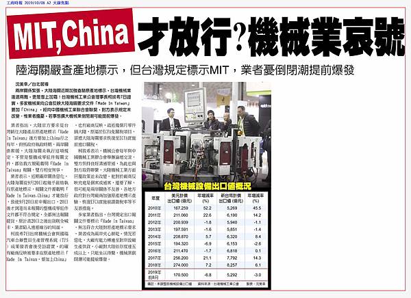 外傳台灣製貨品出口到中國大陸須標識「China」一事,經濟部貿易局昨(8)日表示,一直以來,從台灣出去的貨品都是依規定標註MIT,且目前還未接獲任何實務上被擋關的個案,僅是公會業者轉述進口商、貨物代理人的要求,非陸方官方聲明。