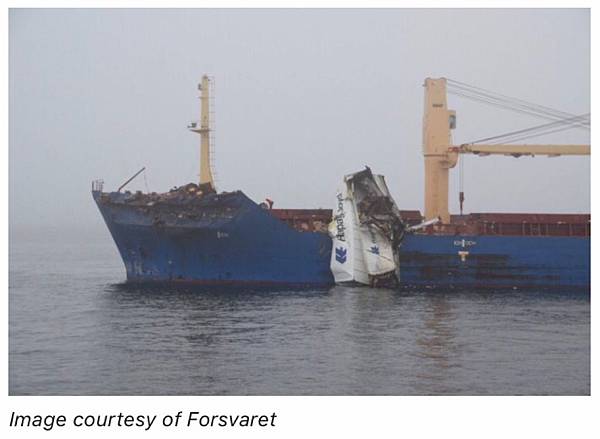Delphis Gdansk貨櫃船船,於2018年3月27週二上午在丹麥海峽與BBC Neptune貨船相撞。