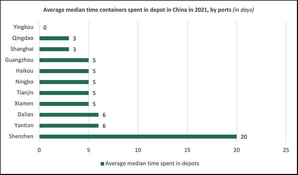 * 2021年貨櫃在中國的平均停留時間為5天,而2020年為61天。